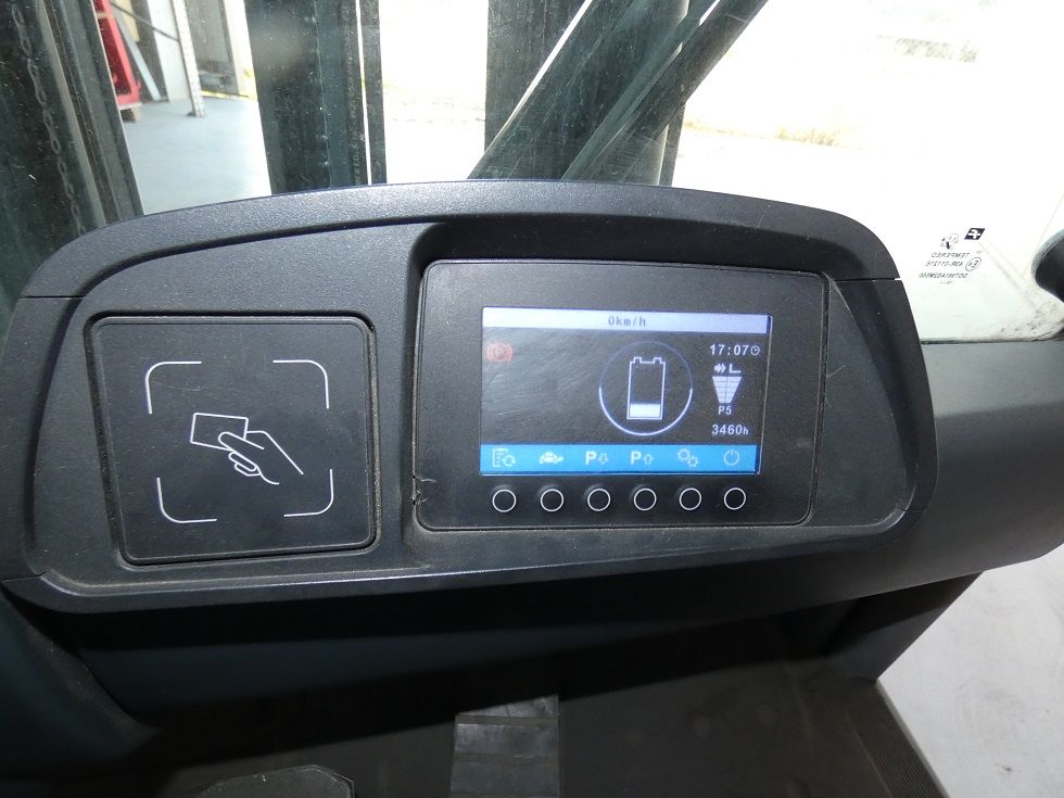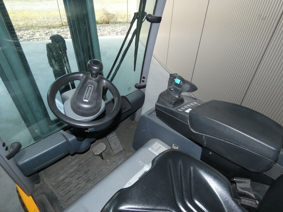 Mast: Triplex Hubhöhe: 4640 mm Bauhöhe: 2115 mm Freihub: 1800 mm Gabellänge: 1200 mm |