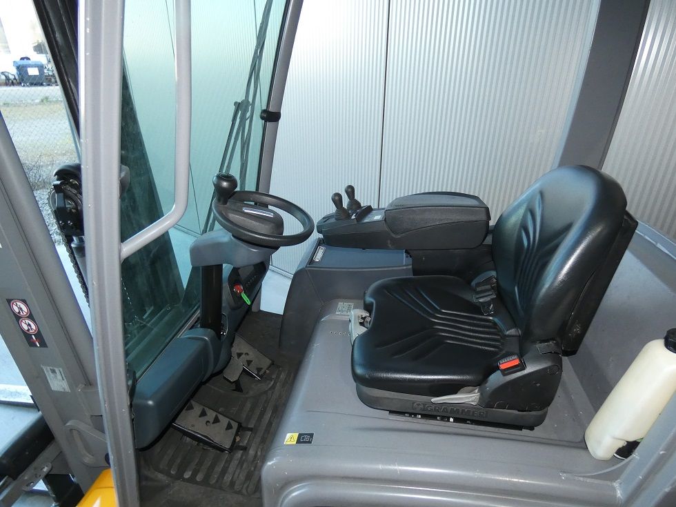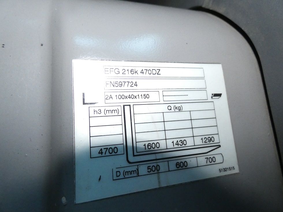Mast: Triplex Hubhöhe: 4700 mm Bauhöhe: 2125 mm Freihub: 1600 mm Gabellänge: 1200 mm |